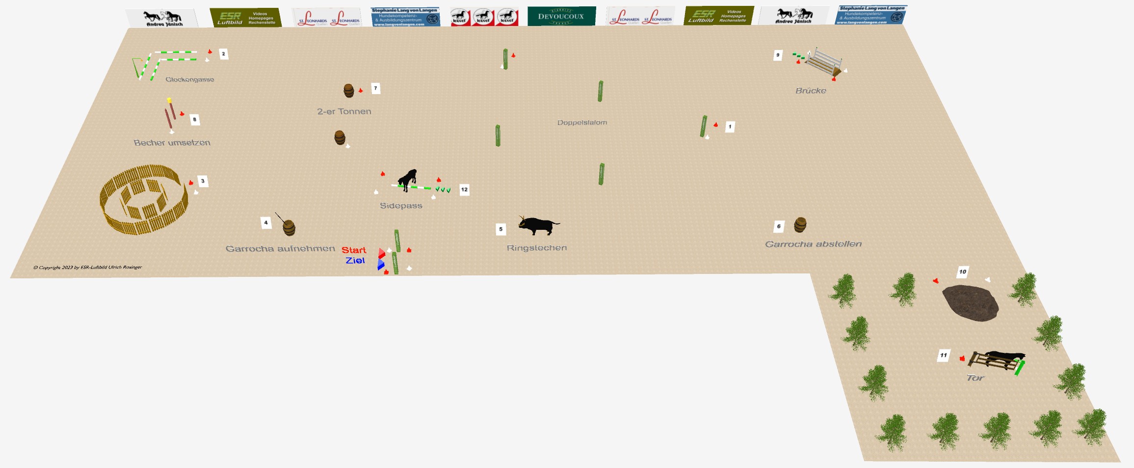 | 5 | Garrocha aufnehmen, Ring stechen, Garrocha abstellen |