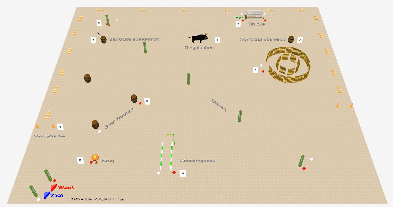 | 3 | Stierlinie – Garocha aufnehmen, Ring stechen, Garocha abstellen |